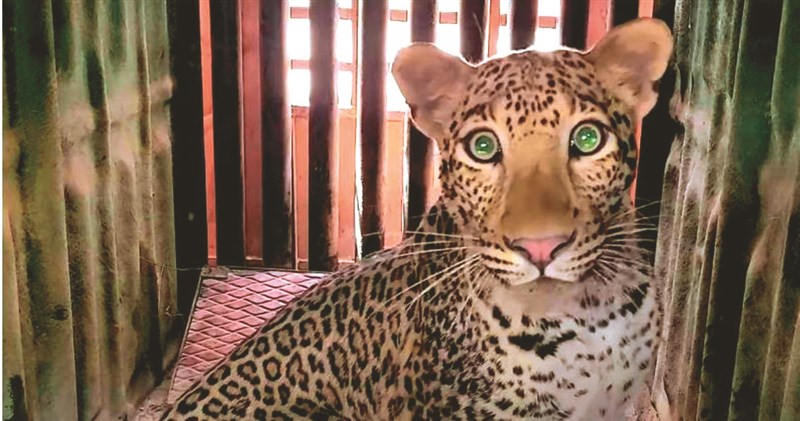 團隊找到這頭面露驚慌的年輕花豹時,先是緩和牠的情緒,接著就對牠的臀部發射一劑鎮靜針,最終順利將花豹帶出廠區,所幸整個過程人獸均安,獸醫進一步檢查花豹後,發現牠沒有受傷,適合放歸野外。團隊隨後將花豹野放,野放前的花豹,在車上還露出無辜大眼的萌樣。