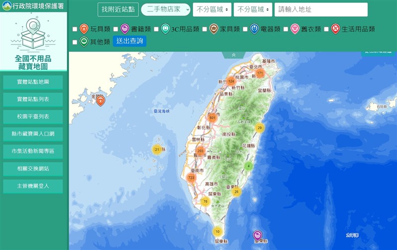全國不用品藏寶地圖資訊應有盡有,邀請民眾一起愛物惜物。圖/行政院環保署