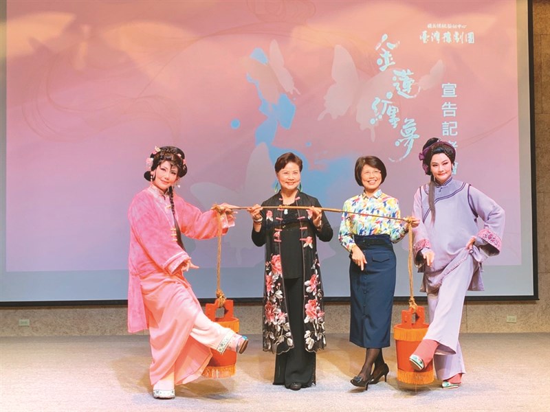 《金蓮纏夢》劇中女性演員張瑄庭(左起)、王海玲、王瓊玲、蕭揚玲合影。圖/記者曹麗蕙