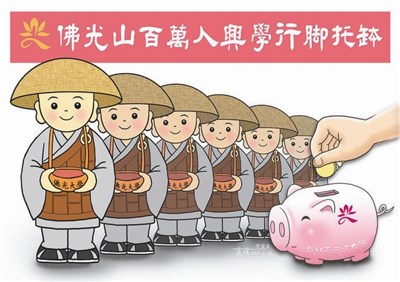 佛光山在美國、台灣、澳洲、菲律賓等地,陸續開辦了五所大學,然而每建設一所大學,都需要相當龐大的經費,動輒耗資幾十億,甚至上百億,當然不是我們少數人的力量所能完成。因此,在我的願望是希望效法武訓的精神,以托缽興學的方式來辦學,於是,也就有了佛光大學「百萬人興學運動」的發起,結合百萬人的力量,共同來建設大學。