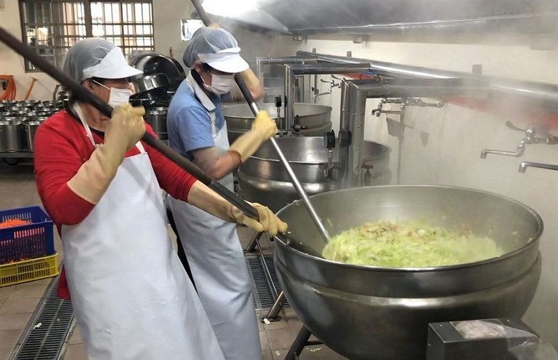 圖為午餐人員煮菜情形。圖/台南市政府提供
