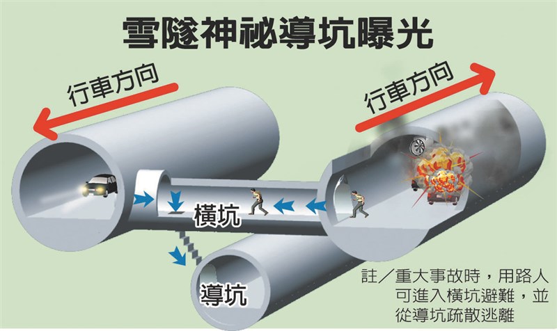 國防部反制第一擊,啟動戰時「衡指所」替代方案,克服通信整合問題,在國道5號「雪山隧道」山脈的「導坑」深處開設聯合作戰指揮中心。圖為導坑示意圖。
