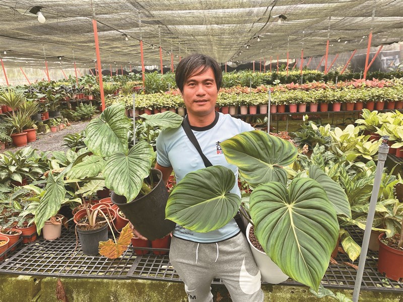 屏東縣鹽埔鄉青農柯茗駿投入觀葉植物栽培15年,他表示,觀葉植物熱潮約從4年前在歐美市場與東南亞市場出現,以往觀葉植物是鮮花市場綠葉,出口日本、澳洲花材一支價格7、8元,如今蔚為主流,一盆一盆賣,喊到4、5萬元以上。他種植泰國斑葉龜背芋,罕見白色斑點是變異株,造型特殊稀有,以往白斑葉片被視為次級品,採集後丟棄,如今變珍品,一盆在網路賣到萬元,其他像是洞洞蔓綠絨,早期一株盆栽150元,現在賣到4、500元。