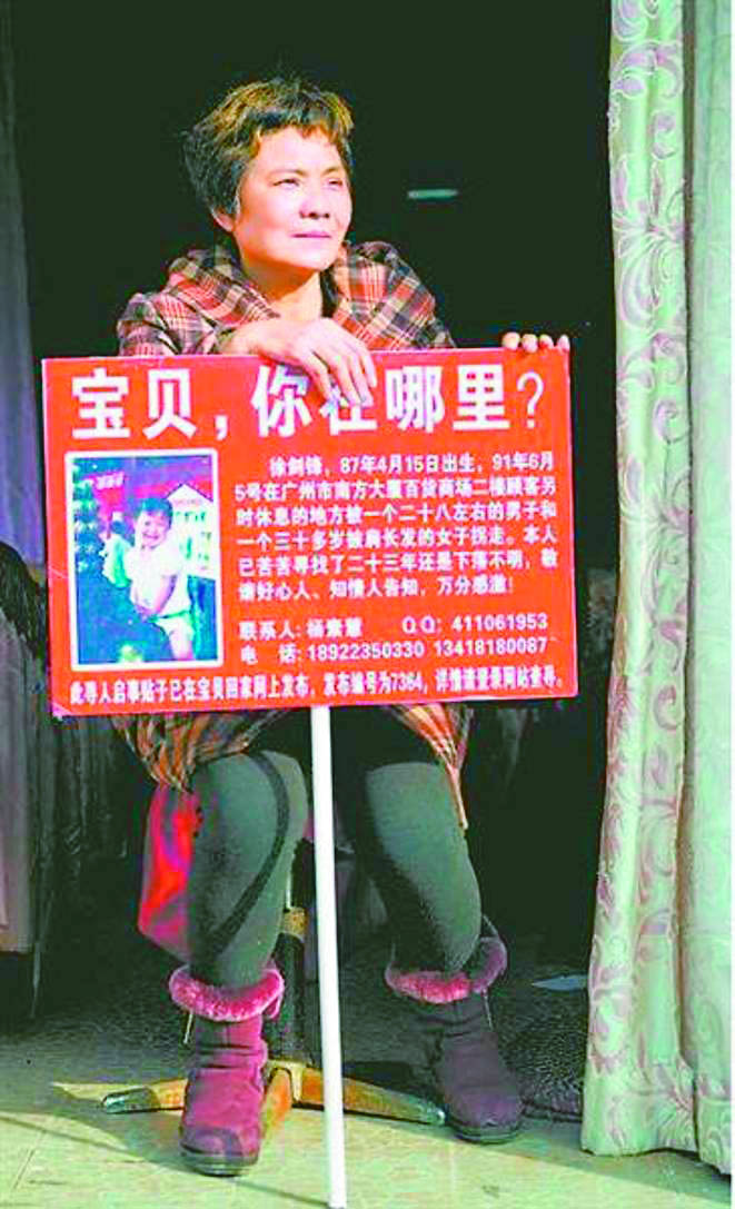 一九九一年,楊素慧把兩個孩子從台州接到廣州。爸爸帶著四歲的兒子徐劍鋒到廣州一家商業大樓時,孩子被人拐走。他次年帶著女兒回家鄉,楊素慧獨自留在廣州尋子,夫妻倆從此很少再聯繫,且於二○○○年離婚。