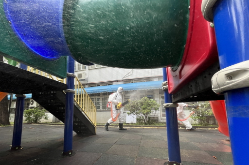 清明連假最後一天 校園環境清消。圖╱中央社