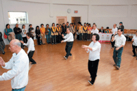 隨後在「有佛法就有辦法」的音樂下,韻律有氧舞蹈班王鶯芳老師示範健身操,再由住持妙牧法師帶領大眾進行「前後左右十八步」活力操,在場來賓大家一起來運動,既作善舉又可健身。