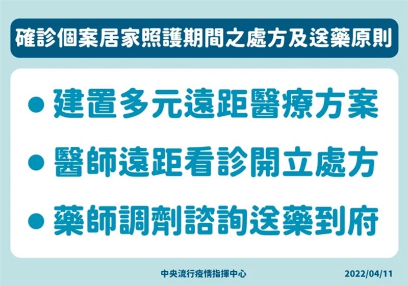 輕症居家照護措施 遠距看診、送藥到府 |2022.04.11 語音朗讀 1893觀看次 字級 大 中 小 國內防疫政策將朝輕症在家隔離照護前進,指揮中心公布確診者居家照護醫療協助措施,由醫師遠距看診,藥師送藥到府,給予支持性治療及症狀治療。圖/123RF 【本報台北訊】國內本土新冠疫情止不住,國內今(11)日新增本土個案439例,連續第3天新增本土個案破400例,中央流行疫情指揮中心指揮官陳時中表示,本土疫情維持在高點。而國內防疫政策將朝輕症在家隔離照護前進,指揮中心公布確診者居家照護醫療協助措施,由醫師遠距看診,藥師送藥到府,給予支持性治療及症狀治療,但不包含抗病毒口服藥,實施日期尚未公布。「COVID-19確診個案居家照護管理指引」明訂小於65歲、無懷孕或洗腎的輕症個案可在家照護,指揮中心今天邀集各方專家舉行「COVID-19確診病例居家照護隔離期間之就醫規劃研商會議」,針對居家照護期間就醫需求進行討論。指揮官陳時中指出,確診個案居家照護期間處方及送藥將以3大原則進行。第1原則是「建置多元遠距醫療方案」,民眾可循現行視訊診療模式,透過「全民健康保險家庭醫師整合性照護計畫」或撥打指定的視訊診療醫療機構視訊診療門診掛號專線,或上網至指定視訊診療醫療機構網頁掛號,約定診療時間。圖/指揮中心第2原則「醫師遠距離看診開立處方」,由衛福部提供新冠確定病例居家照護個案透過「健康益友APP」,進行門診視訊診療預約。為因應新冠確定病例居家照護,得由縣市政府因地制宜指定責任醫院,畫定責任分區,提供門診視訊診療與關懷服務。第3原則「藥師調劑諮詢送藥到府」,陳時中說,確診個案居家照護隔離期間藥品取得方式,將建置多元遠距醫療方案,由醫師看診開立處方,民眾可透過紙本或電子處方箋由藥師調劑送藥到宅取得藥品,或親友代為領藥。指揮中心表示,將儘速調查有意願加入派藥任務的藥師人數,考慮給予津貼。陳時中重申,確診個案居家照護期間處方及送藥,包含症狀治療及慢性病藥物,但公費新冠治療用口服藥物暫時不會直接發放,仍依現行適應症發放,但隨著藥物更充足,將滾動式修正,可望開放更多元發放管道。圖/取自網路醫療應變組副組長羅一鈞說明,國內並非所有染疫者都需服用抗病毒藥物,現階段口服抗病毒藥物保留給65歲以上及有慢性病民眾使用,由於上述民眾多數不符合輕症在家隔離條件,仍須在醫院隔離治療,所以藥師送藥到府暫時不包含口服抗病毒藥物。陳時中提到,因應居家照護期間就醫需求,將建構全天24小時緊急醫療諮詢平台,與台灣急診醫學會合作,由急診專科醫師及專科護理師全天提供緊急醫療諮詢服務,利用網路科技建構「健康益友APP」,新冠確定病例居家照護個案可免費下載使用。 前一篇文章 指揮中心加購70萬份輝瑞口服藥 半數第2季前到貨 下一篇文章 家用快篩將大量採購 高風險區擬每次發放20萬份 熱門新聞 01故宮特展神獸再現 麒麟、鳳凰登場 2026.03.2402【詩】白花鬼2026.03.2503南華大學茶禪雅集 靜坐書寫時光膠囊2026.03.2604星雲大師靈骨分燈歐洲 傳燈萬方2026.03.2605佛光山365日越文版 贈西貢日航大酒店2026.03.2706紅綠葡萄抗氧化抗發炎 連皮吃獲取健康全效益2026.03.2707台灣工藝3專書 呈現文化獨特樣貌2026.03.2708星雲大師靈骨分燈北美 法脈永傳2026.03.2409中南部水庫水位告急 各地農損頻傳2026.03.2410兒童節禮物 新北學生自己票選2026.03.26 訂閱電子報 台北市 天氣預報 台灣一週天氣預報 相關報導 8萬小草力挺 柯:我不投降 718億新興計畫預算 政院不動 能源漲價 央行逐季檢視通膨京華城案 柯文哲重判17年台東實彈操演 美技術人員在場非核轉彎 卓:反核非神主牌