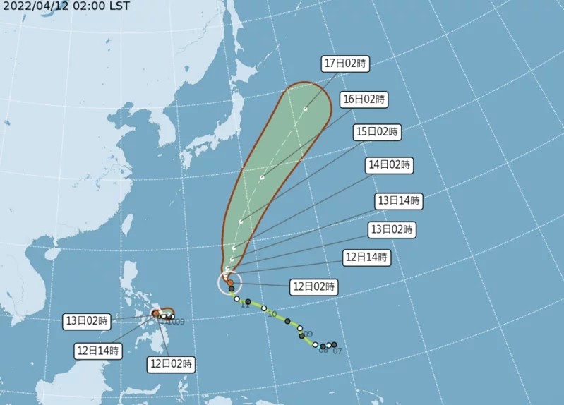 吳德榮也提到,根據中央氣象局12日2時「路徑潛勢預測圖」顯示,「馬勒卡」將於今天增強為「中度」颱風,範圍擴大;在關島西方海面繼續向北北西逐漸轉北,明(13)日起轉北北東、再轉東北,將在日本南方海面大迴轉。輕颱「梅姬」在菲律賓中部,強度維持不了多久,其殘存環流將併入「馬勒卡」的大環流,兩者對台灣皆不具威脅。