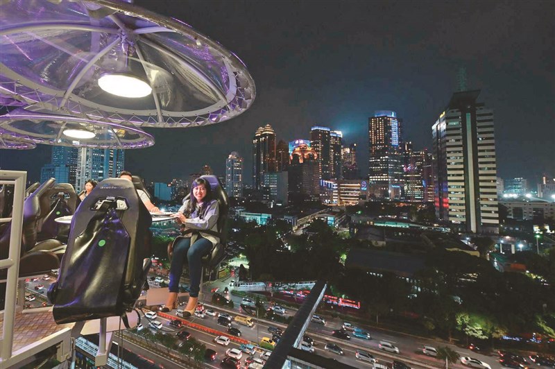 【本報綜合外電報導】印尼近期逐漸走出疫情陰霾,開始進入「與新冠共存」的後疫情時代,民眾也開始可以在餐館內用,嘗試新餐廳。雅加達有一間新開幕的高空餐廳,但並不在高樓大廈之上,而是以以吊車鋼索,將餐廳平台吊至五十公尺高的上空,既驚悚又新奇的創意,吸引不少饕客前往朝聖。