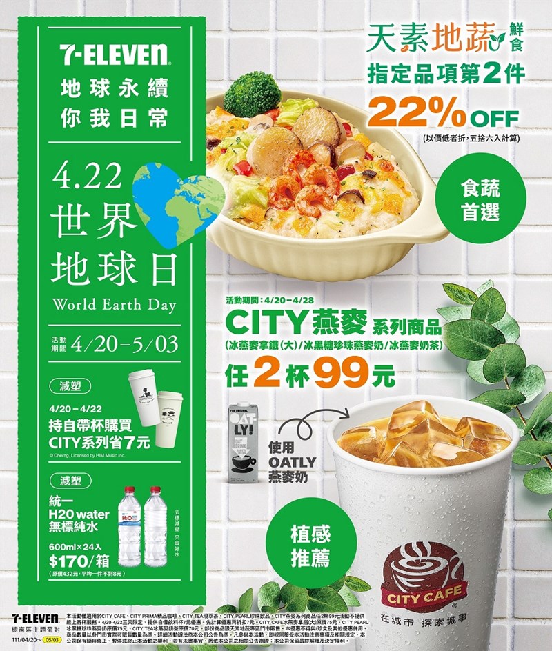 全素有福了! 世界地球日放大綠色優惠 7-11首創燕麥奶入菜 楊旻芳 |2022.04.14 語音朗讀 3495觀看次 字級 大 中 小 統一超商新推出超商首創以燕麥奶入菜的「燕麥奶蔬食海鮮焗飯」另外除了燕麥奶外再推出一款「CITY TEA現萃茶冰燕麥奶茶」,全素食、乳糖不耐症者可以安心享用。圖/7-ELEVEN提供 【記者楊旻芳台北報導】4月22日為一年一度的全球環境保護節日「世界地球日」,除了提醒民眾愛護我們共同生存的地球,也有許多企業響應綠色行動,統一超商祭出「放大綠色優惠」,鼓勵民眾一起「無痕購物」、「永續親子活動」、「擴大低碳餐飲」,推出放大自帶環保杯優惠可現省7元,並且鼓勵民眾開始一周2次的低碳蔬食生活,新推出超商首創以燕麥奶入菜的「燕麥奶蔬食海鮮焗飯」另外除了燕麥奶外再推出一款「CITY TEA現萃茶冰燕麥奶茶」,全素食、乳糖不耐症者可以安心享用。燕麥奶蔬食海鮮焗飯為全蔬食無五辛、蛋奶成分,不過葷素共用產線,嚴格素食者請自行斟酌購買。圖/7-ELEVEN提供2022年為統一超商「永續行動年」,統一超商積極回應金管會「公司治理3.0-永續發展藍圖」推展綠色營運,以永續地球、共好社會與幸福企業三大主軸,聚焦減塑、減碳、惜食與永續採購4大永續專案,並響應聯合國永續發展目標推出具有永續概念的商品與服務,適逢世界地球日, 7-ELEVEN下周起將於超過6,400間門市,請消費者輕鬆將永續行動落實到日常生活,一起實踐「地球永續 你我日常」理念,為地球付出心力。擴大低碳餐飲 邀請民眾每周兩次蔬食日! 將燕麥奶入菜、新增現萃茶冰燕麥奶茶7-ELEVEN透過「周一蔬食日」、「天素地蔬」自有品牌推廣低碳飲食,除2,000家門市設置鮮食專區,「天素地蔬複合店」現已導入10間門市複合經營,並於下周擴大4大蔬食優惠:為鼓勵民眾多吃蔬食,由原本的「周一蔬食日」增加一日,4月23日起每周一及周六購買天素地蔬鮮食商品可享OPEN POINT點數5%回饋,天素地蔬指定鮮食品項第2件享22%折扣。超過300種素蔬食商品的「天素地蔬複合店」將於4月25日起可享「周一蔬食日優惠」複合專區指定品項第二件88折。蔬食入門者也可購買人氣商品「現蒸地瓜」4月18日至4月24日享第2件半價。4/20-5/3有多項綠色優惠。圖/7-ELEVEN提供7-ELEVEN自去年推出燕麥奶系列飲品廣受歡迎,這次突破超商先例將燕麥奶入菜,4月20日起推出「燕麥奶蔬食海鮮焗飯(售價89元)」選用OATLY燕麥奶製成白醬,搭配植物干貝、植物小蝦、植物起司等配菜,帶來蔬食新體驗!燕麥奶蔬食海鮮焗飯使用知名燕麥奶品牌OATLY製成白醬,口感清爽,加入植物干貝、植物小蝦,採用植物起司,不含奶蛋,焗烤口感濃郁,帶給顧客新蔬食享受。圖/7-ELEVEN提供飲品部分「CITY TEA現萃茶冰燕麥奶茶(售價70元)」,使用知名燕麥奶品牌OATLY,搭配現萃茶的英式紅茶,具穀物香氣同時帶有淡淡花果茶香,口感香醇滑順、甜而不膩。新推出的CITY TEA現萃茶冰燕麥奶茶。圖/7-ELEVEN提供為響應世界地球日,自4月20日至28日購買CITY燕麥系列飲品任選2杯只要99元,包括:CITY TEA冰燕麥奶茶、CITY CAFE大杯冰燕麥拿鐵、CITY PEARL冰黑糖珍珠燕麥奶。天素地蔬複合門市全台已增加至10家。圖/人間福報數位部來做環保好咖! 鼓勵無痕購物 4/20至22日自帶杯現省7元為鼓勵消費者自帶飲料杯、購物袋,7-ELEVEN於世界地球日放大自帶杯折扣優惠,4月20日至22日間購買CITY全系列飲品使用自帶杯皆可現省7元,期望能減少一次性飲料杯使用。4月20日至22日間購買CITY全系列飲品使用自帶杯皆可現省7元,期望能減少一次性飲料杯使用。圖/7-ELEVEN提供並於OPEN POINT APP行動隨時取自4月22日限時3天推出CITY系列指定飲品優惠,可至6月底前兌換,兌領時使用自帶杯還可再享現折3元優惠。此外,7-ELEVEN全新推出「20公升加大版肖像不織布環保袋」與超人氣肖像跨界合作,「迪士尼」、「三麗鷗」、「史奴比」、「哆啦A夢」等四大明星換上愛地球主題的綠色意象、雙面造型設計,讓環保購物袋躍升時尚配件,銅板價49元即可擁有。此外,更從自身物流服務出發,跨界架構循環消費平台,其中「交貨便」藉由綿密的物流網絡串聯各大生活品牌回收計畫,提供回收碳粉匣、二手衣物等服務,即日起至4月30日止,為鼓勵消費者使用7-ELEVEN交貨便服務寄回HP原廠空碳粉匣,完成指定任務後可獲得透過簡訊送出的CITY CAFE中杯熱拿鐵兌換序號乙杯。另外喜愛網購的消費者也能從源頭減少一次性網購包材產生,網購店取可選擇使用PackAge+配客嘉循環包材的電商平台、取貨後可於29間7-ELEVEN門市歸還。即日起至4月30日止,為鼓勵消費者使用7-ELEVEN交貨便服務寄回HP原廠空碳粉匣,完成指定任務後可獲得透過簡訊送出的CITY CAFE中杯熱拿鐵兌換序號乙杯。喜愛網購的消費者也能從源頭減少一次性網購包材產生,網購店取可選擇使用PackAge+配客嘉循環包材的電商平台、取貨後可於29間7-ELEVEN門市歸還。圖/7-ELEVEN提供「地球多美麗」親子同樂會 從小懂得愛地球!7-ELEVEN與統一超商好鄰居文教基金會共同推動永續教育,陸續結合在地社企推出多種友善環境主題的好鄰居同樂會親子活動,今年3月舉辦「紙能給你好森活」主題同樂會,教導小朋友紙類回收循環再利用的重要性,以及學習永續標章,共影響超過上萬人次。為響應世界地球日並將永續教育持續向下紮根,自4月15日起至5月31日與7-ELEVEN把愛找回來公益募款夥伴