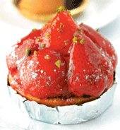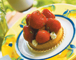 ●相當粉酥的杏仁塔上擠滿粉紅色的草莓奶露餡,加上大顆又鮮甜的草莓,是應景又受歡迎的季節甜點。(圖/古鎮榮提供)