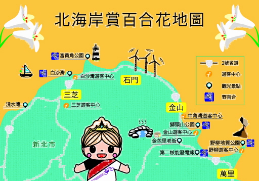 太美了!台灣野百合盛開 北觀處提供賞花地圖 |2022.04.21 語音朗讀 1624觀看次 字級 大 中 小 北海岸台灣野百合盛開純白美麗,北觀處提供賞花地圖。圖/北觀處提供 【本報台北訊】台灣野百合為台灣特有的百合屬植物,北海岸百合花海岸目前開花已達5成,4到6月進入盛開季節,純白美麗加上一望無際的海景,交通部觀光局北觀處邀請民眾來一趟賞花之旅,提供賞花地圖。北觀處表示,台灣野百合具有芳芬香味、白色花瓣、花背中肋有明顯紫褐色條紋,是辨識它們的重要特徵。目前很多地方都開5成了,賞花地點建議民眾可以至白沙灣入口意象、往麟山鼻步道、富貴角燈塔步道、金山獅頭山步道、台電核二廠外台二線路段草坡及野柳地質公園內都可以看見百合花美麗的芳蹤。北海岸台灣野百合盛開純白美麗。圖/北觀處提供北海岸賞花,也可以順道造訪北海岸沿途的景點,民眾可來趟輕鬆自在的單車小旅行,北觀處已完成北海岸濱海自行車路線串接,南起三芝淺水灣,途經石門白沙灣的雙灣自行車道,沿著台二線,接續於中角灣旁的萬金自行車道,串聯野柳地質公園、龜吼維納斯海岸及萬里翡翠灣到基隆湖海灣,營造北海岸獨特的濱海自行車路線。民眾除了自行開車外,亦可搭乘台灣好行「皇冠北海岸線716」、淡水客運「862」、「863」輕鬆暢遊北海岸。北觀處提醒民眾拍攝美景時,多留意腳下注意安全,請勿踐踏及採摘花朵,依據「發展觀光條例」第64條規定,於風景特定區內破壞花草樹木者,可處5000元以上3萬元以下罰鍰。北海岸台灣野百合盛開純白美麗,北觀處提供賞花地圖。圖/北觀處提供相關訊息可參北觀官方網站:https://www.northguan-nsa.gov.tw/user/main.aspx?Lang=1 前一篇文章 iPS細胞再生椎間盤 日本團隊:盼3年內用於人體 下一篇文章 彰化首座百貨公司簽約!緞帶式建築將成新地標 熱門新聞 01南華大學茶禪雅集 靜坐書寫時光膠囊2026.03.2602星雲大師靈骨分燈歐洲 傳燈萬方2026.03.2603佛光山365日越文版 贈西貢日航大酒店2026.03.2704紅綠葡萄抗氧化抗發炎 連皮吃獲取健康全效益2026.03.2705台灣工藝3專書 呈現文化獨特樣貌2026.03.2706中職37年 明大巨蛋開幕戰2026.03.2707兒童節禮物 新北學生自己票選2026.03.2608北京中學老師 精準預言美伊開戰2026.03.2609全球首例 菲國進入能源緊急狀態2026.03.2610滑雪勝地轉型 數位遊牧族進駐2026.03.26 訂閱電子報 台北市 天氣預報 台灣一週天氣預報 相關報導 電梯按鍵怎麼取消? 網友指出還有這招基隆和平島阿拉寶灣5月開放 即日起可網路預約北捷引進南韓樂鐵電聯車 乘車空間更寬敞屏東藝起派對移師潮州 寫生比賽29日截止報名閒置多年轉型 花蓮鳳林新露營地4星高規格新景點「樹鼠」? 台南安平樹屋標成「tree mouse」