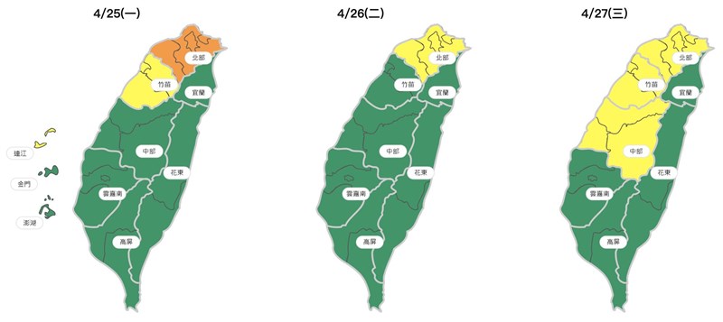 今(25)日起三天空氣品質。圖/取自空品監測網