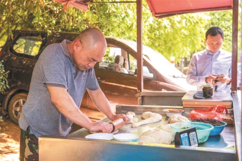 曹加齊的燒餅攤在當地頗有名氣,但出攤時間時常不固定。他說:「之前為了照顧我媽,一年沒有出攤做生意。」