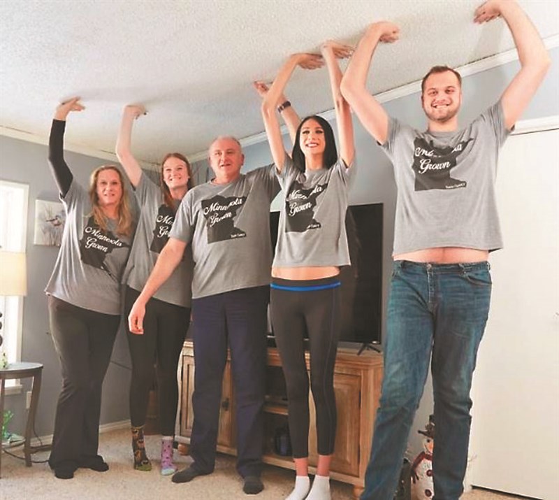 【本報綜合外電報導】美國明尼蘇達州崔(Trapp family)一家五口平均身高二百零三點二公分,獲得金氏世界紀錄認證為「世界上最高家庭」。