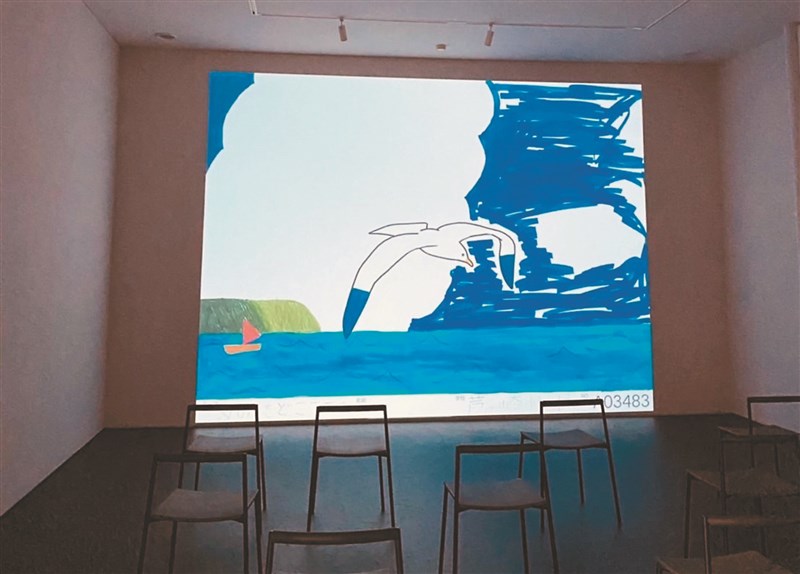 台灣團隊「豪華朗機工」將日本學童的「天氣鳥」畫作掃描,製成動畫,在越後妻有大地藝術節展出。圖/中央社