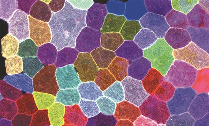 中研院團隊用上百種顏色標誌不同細胞,即時追蹤動態,意外發現教科書以外的細胞分裂方式。圖/中研院提供