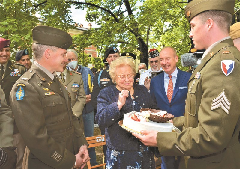 【本報綜合外電報導】駐義大利美國陸軍日前將一個生日蛋糕、送給隔天就九十歲的維琴察(Vicenza)市民米翁(Meri Mion),以補償七十七年前攻到附近的美軍官兵,吃掉母親專為她十三歲生日製作的蛋糕。