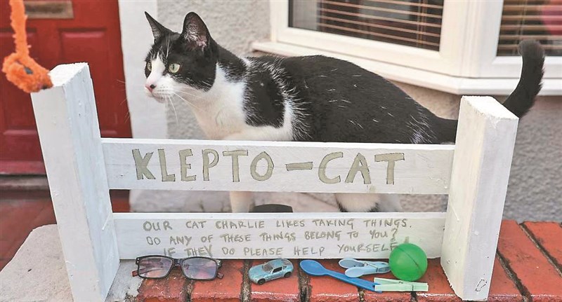 【本報綜合外電報導】英國布里斯托爾一名女子比格(Alice Bigge)家中有隻名叫查理(Charlie)的賓士貓,每天時總會從外面叼不少奇怪的物品回家。比格表示,剛開始她還沒有特別注意到查理這個行為有什麼問題,直到有天她起床睜開眼,驚見床頭有隻鄰居家的恐龍玩偶,才驚覺愛貓是個「偷竊」慣犯。