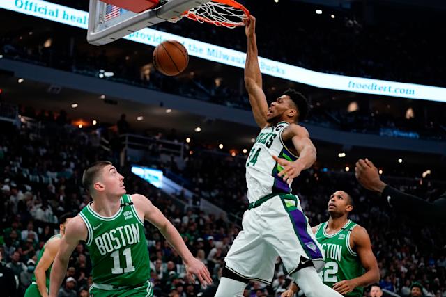 【記者張哲郢綜合外電報導】美國職籃密爾瓦基公鹿7日回到主場迎戰波士頓塞爾蒂克,靠著「字母哥」安戴托昆波(Giannis Antetokounmpo)全場42分12籃板8助攻全能身手,包含讀秒階段逆轉上籃,公鹿103:101險勝,系列賽2勝1敗領先。