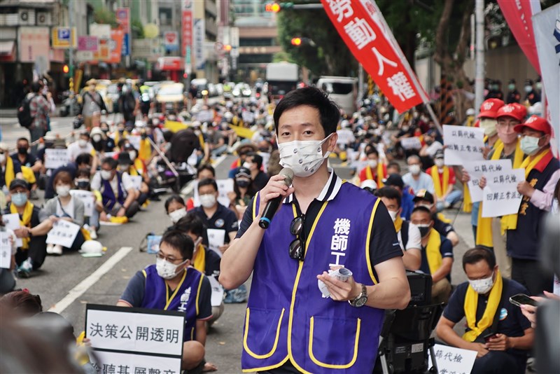 機師工會等團體及機師家屬共300多人,今日在疾管署外召開記者會表達訴求。圖/盧逸峰