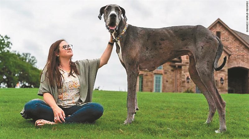 【本報綜合外電報導】美國德州貝德福德(Bedford)一隻二歲大丹犬宙斯(Zeus),近來被金氏世界紀錄確認為全球現存最高的狗狗,從腳到肩膀的身高為一點○四六公尺。