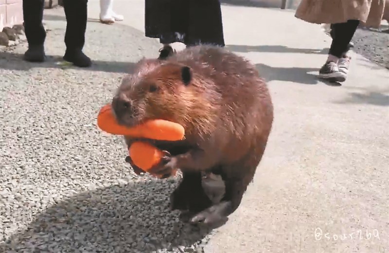 【本報綜合外電報導】日本熊本縣「阿蘇農場樂園」一隻河狸,日前被拍到為了拿著遊客給自己的兩根紅蘿蔔,用兩隻後腿行走,雖然中間一度「手滑」,但努力把兩根紅蘿蔔帶回家的模樣,讓網友直呼:「療癒又可愛!」