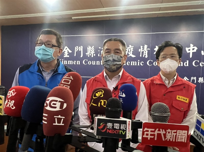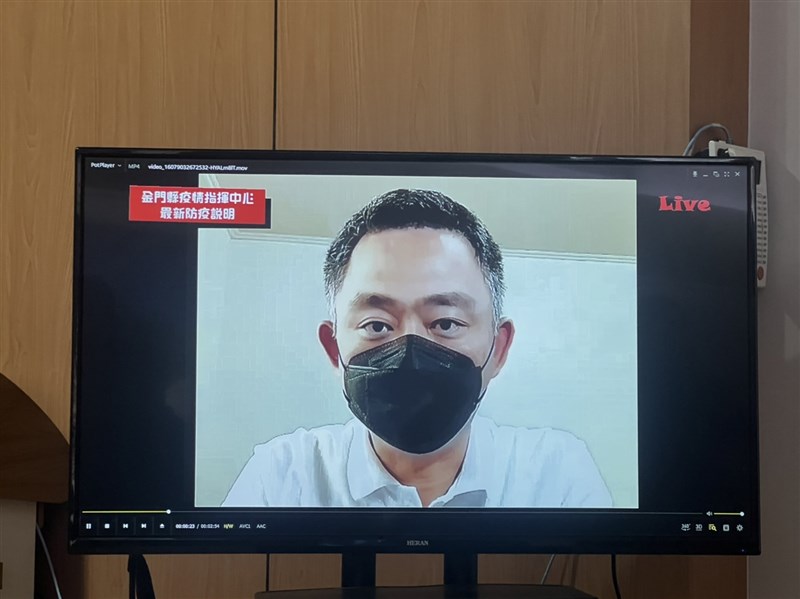 金門縣府今天召開防疫記者會,秘書長陳祥麟證實縣長楊鎮浯夫婦確診了。圖/蔡家蓁
