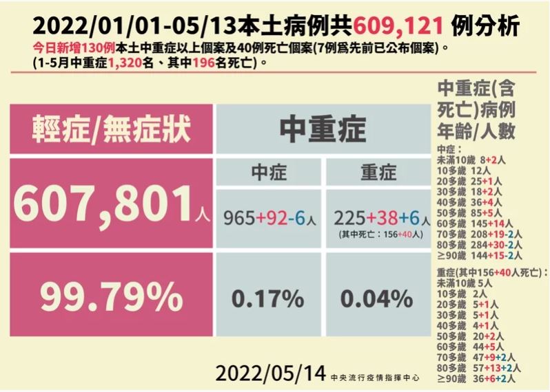 疫情高峰還沒到 指揮中心推估最快5月20日 |2022.05.14 語音朗讀 984觀看次 字級 大 中 小 疫情高峰還沒到,指揮中心預估5月下旬出現。圖為新北市的醫院急診室外排隊人龍。圖/資料照片 【本報台北訊】國內疫情持續延燒,有醫師預估疫情高峰會在5月22日,且單日可能新增12.3萬例本土確診,對此,指揮中心醫療應變組副組長羅一鈞表示,目前綜合推估趨勢,高峰可能落在5月20至30日之間,最快5月20日,慢一點則是5月底。羅一鈞表示,疫情北中南不同,北部較早開始,但中南部也逐步增加,近幾天都在高原情形,周末後要按區域是否增加,會影響後續判斷,高峰有多少人,以低推估、中推估、高推估,現在還沒到低推估,高峰是否到每天10萬人,要看疫情與北中南變化再說明。圖/指揮中心提供國內今天新增6萬3964例本土個案,40例死亡個案,中重症個案新增130例,其中重症38例,羅一鈞表示,新增中重症個案年齡分布在20至90多歲,有許多有慢性病,最年輕為一名20多歲男性。羅一鈞表示,這名20多歲男性有施打兩劑疫苗,本身有慢性神經系統疾病,長期使用呼吸系統,染疫後因呼吸衰竭、加重本身神經肌肉疾病而死亡;另外一名30多歲男性,本身有糖尿病跟慢性系統疾病,染疫後合併敗血性休克死亡,他沒有接種疫苗。圖/指揮中心提供羅一鈞表示,整體來講,今天新增中重症個案,大多數是60歲以上,中症有20人沒接種疫苗、重症有14人沒接種疫苗。依照我國人口比,未接種疫苗比例少,但是中重症死亡個案中多數沒接種疫苗,指揮中心呼籲大家接種疫苗,打疫苗會有較好保護力。 前一篇文章 中職/昨天才剛雙響 陳子豪今快篩陽性 下一篇文章 Novavax疫苗要來了 衛福部力拚1個月審查完畢 熱門新聞 01【詩】 寫在秋分之前2025.10.1402昆士蘭青年成長營 個個都是馴龍高手2025.10.1303星雲大師全集【經義】佛法滿人間—善因妙果2025.10.1304足球場成教室 貧童踢出希望2025.10.1305六龜祕湯溫泉季 開跑2025.10.1306人間佛教青年論壇 研討共生與共榮2025.10.1307白鷺江邊小憩2025.10.1308建築的恐懼與療癒 新北美術館展出 2025.10.1309【父母親的話】 民國初年的戀愛故事2025.10.1310【玉子手札】擱淺藍鯨 重生獨白2025.10.13 訂閱電子報 台北市 天氣預報 台灣一週天氣預報 相關報導 海軍操演落幕 陸空演訓下旬登場台中會展中心首展 五金工具擔綱中科院輔力外骨骼系統 20公斤砲彈輕鬆舉共軍登陸駁船曝光 外媒:航向世界三戰國家檔案館以史為鏡 照見現在與未來美參院強烈鼓勵 邀台環太軍演