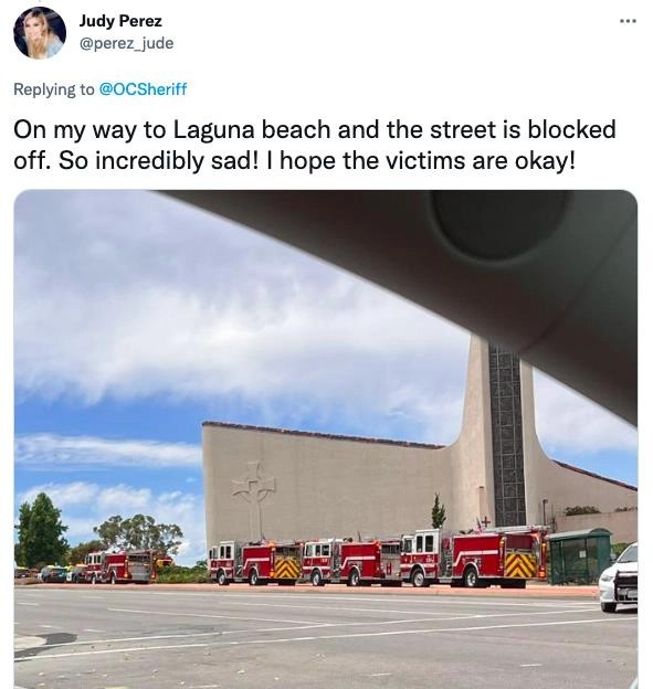 【本報綜合外電報導】15日在南加州橙縣拉古納伍茲(Laguna Woods)的一座教堂發生槍擊事件,造成一人死亡,另外四人重傷,一人輕傷。據悉,這六人包括陪同母親前往做禮拜的鄭醫師,據悉,他在槍手開槍後,為了制止槍手衝上去時被槍手開槍擊斃。