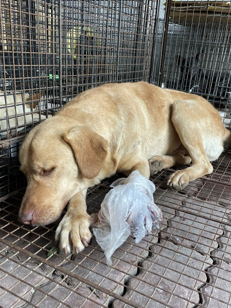 大黃誤觸山豬吊陷阱,左前肢截肢,讓山友和動保人員很心疼,家畜所更強調會積極查辦。圖/嘉義縣府提供
