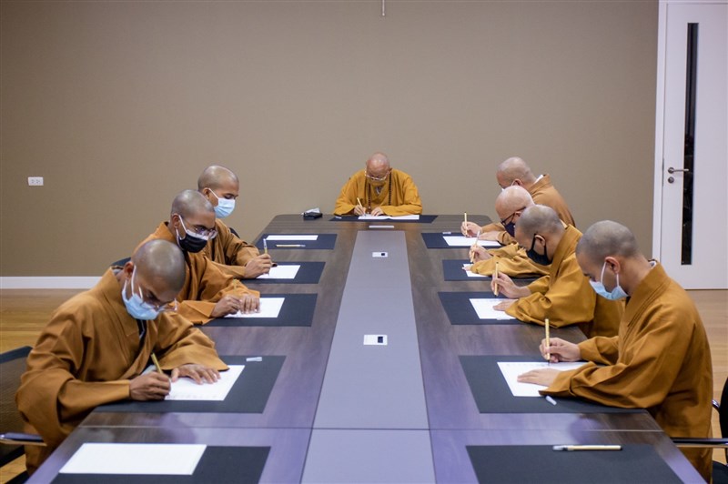 逾千僧人全球同步 抄經回向疫情平安 |2022.05.16 語音朗讀 8656觀看次 字級 大 中 小 【人間社記者李生鳳大樹報導】佛光山今(16)日舉辦「佛光山開山五十六周年──全球同步抄經修持」,五大洲道場響應,透過人間衛視製作的全球同步抄經修持影片,讓疫情下的大眾,仍能經由雲端一起紀念開山的殊勝日子。佛光山總本山的僧信二眾今日晚間7時,分別在佛光山雲居樓二樓、佛陀紀念館五觀堂抄寫《心經》。佛光山舉辦「佛光山開山五十六周年──全球同步抄經修持」,佛光山總本山的僧信在佛光山住持心保和尚帶領下抄寫《心經》,回向十方。圖╱人間社記者梁清秩佛光山開山星雲大師透過影片開示抄經的意義,說明佛教的誦經、寫經都是修持,像是念書時,多念就能多背誦與記憶,將《阿彌陀經》一次又念過一次,自能將西方極樂世界的形象逐漸印烙在八識田中,極樂世界就在心中。「寫經、抄經也是,每寫下一個字,就像是在心上烙了一個印。」大師指出,如同照相般,如此不斷,「當烙印烙得多了,經文的道理都在我的心裡面,即心即佛了。」佛陀紀念館全體法師約70餘人,於五觀堂參與全球同步抄經修持。圖╱人間社記者李明怡●大師弘法願力 匯聚信仰力量以佛光山住持心保和尚為首,退居和尚心培和尚、國際佛光會署理會長慈容法師,以及佛光山常務副住持慧傳法師、副住持慧倫法師和慧昭法師、各單位主管領眾抄經。大眾依循抄經程序,誦讀和抄寫《心經》,恭讀星雲大師的〈為抄經聞法者祈願文〉。「5月16日佛光日,是因著星雲大師的願力、佛光山開山殊勝的日子。」心保和尚表示,抄寫的《心經》是大家熟知,且蘊藏般若精華的一部經典,生活中會有煩惱是因為有「我」,沒有體悟到「空」的道理,期許大眾透過《心經》的般若智慧,開啟解脫之道,今日能凝聚全球五大洲道場僧信二眾同步抄經,是星雲大師弘法的願力,希望透過抄經的功德,回向世界和平,疫情早日遠離。慈容法師則說,星雲大師倡導的人間佛教,可以運用在生活中,體會在心裡面,經由一筆一筆的抄寫,對於經典的內容更能深刻體會,每年在佛光日舉辦的抄經,無論在何處,無論哪個人都很歡喜。70位信眾在紐西蘭佛光山住持滿信法師及常住法師的帶領下,伴隨著阿彌陀佛聖號,虔誠恭敬抄寫《心經》。圖/紐西蘭北島佛光山提供●佛法安定人心 超越時空距離受疫情影響,道場也有變通方式,例如讓信眾將《心經》請領回家抄寫,希望讓疫情下焦慮的人心,透過抄經使心安定,更有力量。全球佛光山道場在各地發起抄經,並以各種形式響應佛光日,北雪梨佛光緣邀請資深佛光青年帶著自己的佛光寶寶前來,落實信仰傳承。大阪佛光山有親子檔、祖孫檔一同,有未滿一歲的寶寶讓外婆抱著抄經,是該道場年紀最小的參與者。南非南華寺信眾歡喜響應抄經,還有當地人士著傳統服飾一同抄經;台北駐南非開普敦辦事處處長夫人楊純慧分享,他試著靜下心來抄經,嚮往《心經》的境界,《心經》是盞明燈,指引著在黑暗幽谷裡的人們。佛光山泰華寺住持心定和尚,帶法師抄經,一起回向全球疫情。圖/泰華寺提供巴西如來寺住持妙佑法師領眾諷誦《心經》後,大眾靜心寧神恭抄《心經》。圖/人間社記者Paulo Lee大阪佛光山監寺如泉法師帶領僧信二眾與全球共同抄經修持。圖/人間社記者知因北島佛光山僧信隨著佛號聲,虔誠恭敬抄經修持。圖╱北島佛光山提供佛光三好人家,三代同堂抄經,是信仰傳承的典範。圖╱南華寺提供 前一篇文章 各縣市疫情狀況不一 教團籲發函各校因地制宜 下一篇文章 老爺也撐不住了 熱門新聞 01【閃文集】 駝峰天使2025.11.0402父親的山水2025.10.3103佛光會送家具至光復 助受災戶重建家園2025.10.3104魏碧糈 用茶講心教品德2025.11.0105印尼佛教大學教職員 佛光山佛學院培訓 2025.10.3106【遇見荷】 呼喚你的名字2025.10.3107【營養專欄】破解糖尿病飲食4大迷思2025.11.0108【墨香流韻】一筆清香 一念無塵 梅適情2025.11.0209社論--新台幣改版2025.10.3110梵蒂岡跨宗教對話60周年 教宗喜會中華人間佛教代表2025.10.31 訂閱電子報 台北市 天氣預報 台灣一週天氣預報 相關報導 翡翠水庫支援發電 台電須付補償費林信義:台灣於APEC能見度提升國軍裝備採購 證實5案延宕鄭麗文:讓國民黨羊群變獅群APEC林信義進場與國旗同框陸勝1號操演 女兵不讓鬚眉