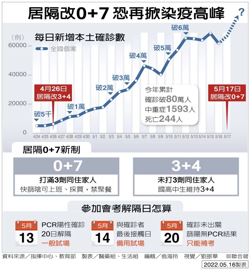 居隔改0+7 恐再掀染疫高峰。圖表/聯合報