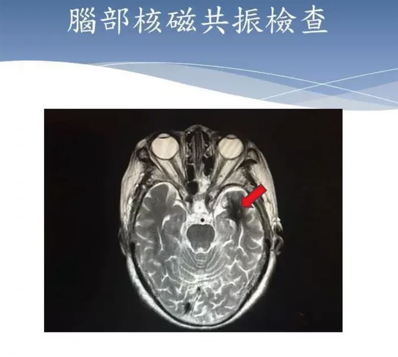 經腦部核磁共振檢查,女子左側大腦顳葉有陳舊的受傷痕跡,經腦波檢查左側腦部有異常癲癇放電現象。圖/書田診所提供