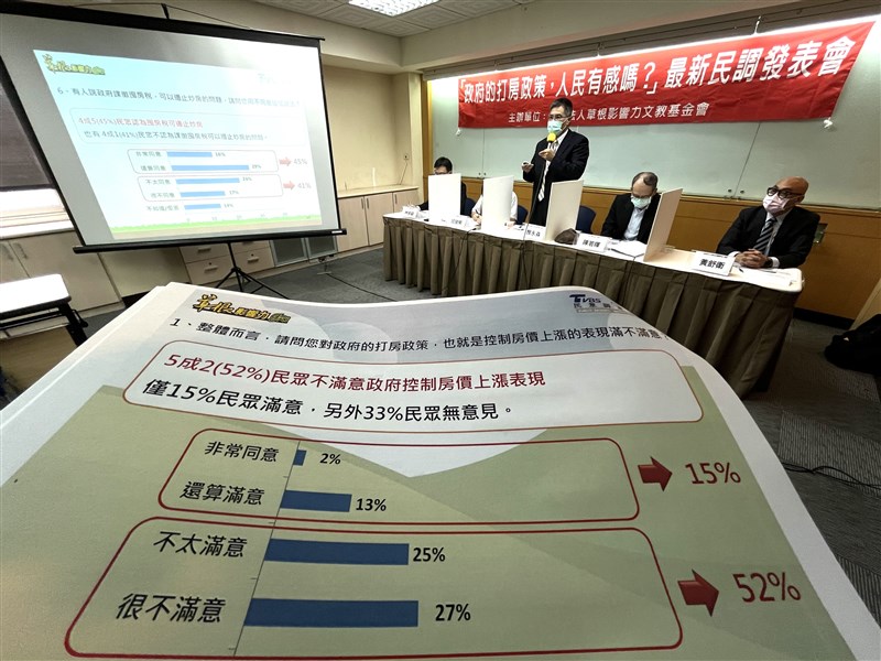 草根影響力基金會18日舉行記者會公布打房調查結果,指出有9成民眾認為房價太高,超過5成擔心房市泡沫化。圖/中央社
