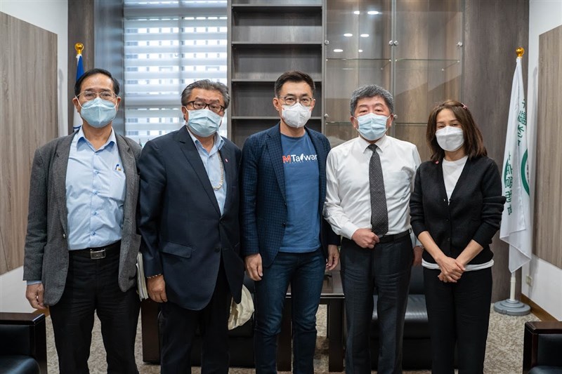 陳時中允諾立委江啟臣、高金素梅、孔文吉、鄭天財的建議,盡速將偏鄉、原鄉、離島等偏遠地區納入「快篩陽性視同確診」的適用對象。圖╱江啟臣提供
