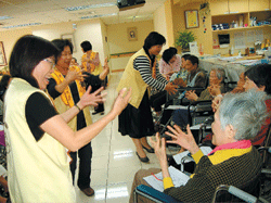 新營分會會長林智慧與佛光幹部把歡喜和關懷帶進護理之家,打開二十幾位長者封閉已久的心扉,在「賓果」趣味遊戲中,老人家使盡全力,認真投入,每人則獲贈「觀世音菩薩掛飾」,大家如獲至寶藏在懷裡,珍愛無比。(人間社記者黃俊雄攝)