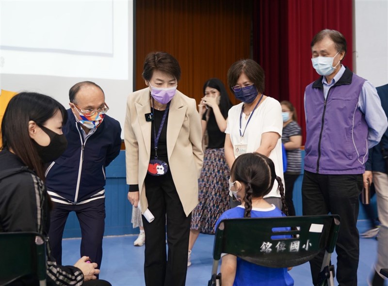 【記者曾博群台北報導】台北市今開打校園兒童BNT,台北市副市長黃珊珊與教育局長曾燦金前往銘傳國小視察, 截至111年5月25日止,共有137間國小已統計5-11歲學生施打BNT疫苗之意願,約有5萬5000名學生有意願接種兒童BNT疫苗,比例約占五成。
