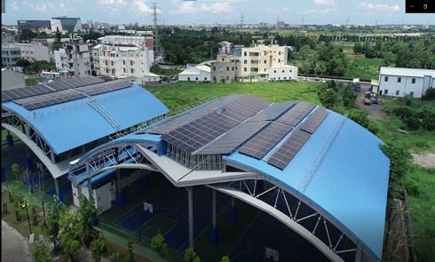 【記者羅智華台南報導】為打造綠能友善城市,教育局除推動校園設置光電球場,也陸續針對8處體育場舘辦理太陽光電設置工程,包含永華體育園區內的市立田徑場、籃球場、網球場、槌球場、桌球舘、體新營風雨籃球場等,皆完成設置。8處場舘年度總發電量可達156萬7971度,相當於可提供377個家戶正常用電量。