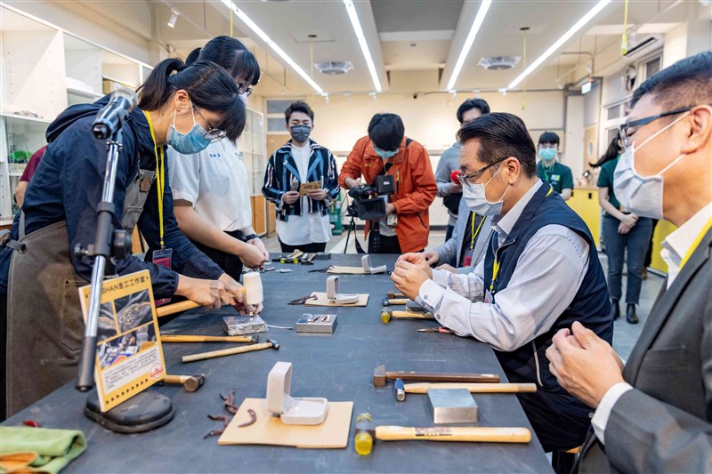 樹林自造教育及科技中心開幕,活動體驗金工製作純銀領帶夾。圖/新北教育局提供
