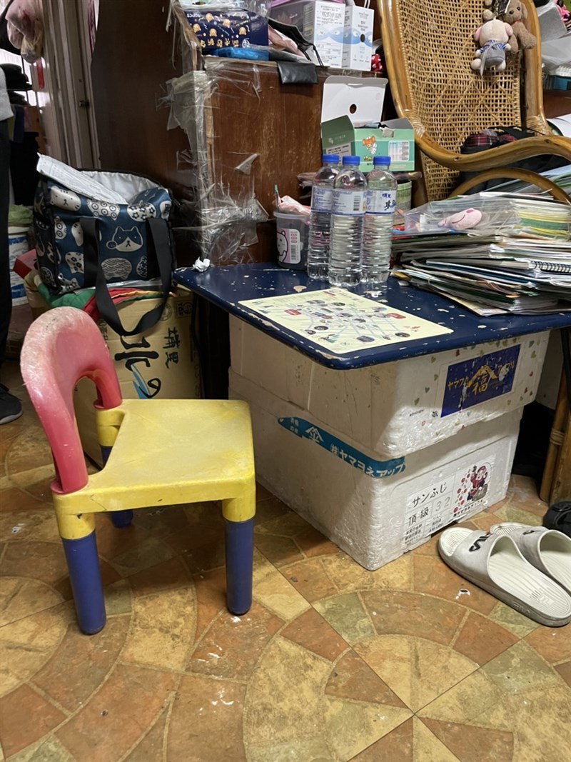 弱勢家庭對於種種變數都感焦慮,需要物資與心靈陪伴、鼓勵。圖為有小小孩的家庭僅能使用小木板學習的窘境。圖/南台中家扶提供