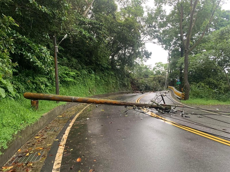 新北市新店警分局今天凌晨3時39分接獲報案,坪林區北宜公路31.1公里處,靠近知名景點財茂灣附近,發生邊坡土石滑落,導致路邊的電線桿也斷裂,現場雙向車道交通嚴重受阻,警方獲報立即到現場進行交通管制,並通報公路總局景美工務段及台電公司派員進行搶修中。
