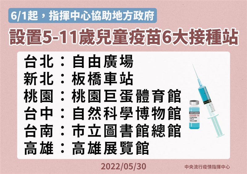 輝瑞兒童疫苗再到貨33萬劑 六都6/1起設大型接種站 |2022.05.30 語音朗讀 1097觀看次 字級 大 中 小 30日有33萬劑輝瑞兒童疫苗抵台,中央流行疫情指揮中心將於6月1日起在六都設置兒童疫苗大型接種站。圖/中央社 【本報台北訊】國內今(30)日上午再到貨輝瑞兒童疫苗33萬劑,中央流行疫情指揮中心將於6月1日起在六都設置兒童疫苗大型接種站。指揮官陳時中表示,疫苗到貨正在貼標籤,因應接下來假日,避免家長憂心,因此也設立大型接種站。今年第二批採購的輝瑞兒童劑型疫苗33.12萬劑,於今日上午抵達桃園國際機場。本批效期至今年9月30日,目前共有110.88萬劑到貨,分別為首批5月16日77.76萬劑及本批33.12萬劑。陳時中表示,截至5月28日,5至11歲疫苗兒童接種人數達45.5萬人,約占該族群三成。指揮中心也將於6月1日起協助地方政府設置5至11歲兒童疫苗大型接種站,分別於台北自由廣場、新北板橋車站、桃園巨蛋體育館、台中自然科學博物館、台南市立圖書總館、高雄展覽館等地設置,並將視各接種站接種情形,額外增加疫苗配送。圖/指揮中心目前各縣市也積極推動兒童疫苗接種作業,安排合約醫療院所或校園集中提供接種,對於滿5至11歲兒童,家長及兒童可依意願選擇接種,若於大型接種站或合約醫療院所接種,請家長,包括監護人或關係人,陪同前往接種,於現場簽署接種評估及意願書,並經醫師評估後接種。另若曾為確診個案,須於確診康復三個月後才能接種疫苗。指揮中心已於今年4月28日與香港復星公司及德國BioNTech公司簽署疫苗供應合約,並與美國Pfizer公司及德國BioNTech公司簽署兒童疫苗補充合約,預定供應220萬劑兒童劑型及180萬劑成人劑型疫苗做為基礎劑、基礎加強劑或追加劑使用,並視需求擴充400萬劑成人劑型疫苗,以因應變異病毒株威脅。圖/中央社 前一篇文章 餐旅系畢業只能端盤子?華大學生加拿大創業當顧問 下一篇文章 猴痘擴散多國 世衛:已構成全球公衛中度風險 熱門新聞 01【讓愛自由】纏繞與獨立之間2026.04.0202新生首次到校2026.04.0203明德水庫蓄水量僅27% 今起供4停42026.04.0104星雲大師靈骨分燈日本 法燈長明2026.04.0105星雲大師靈骨分燈泰國 化益世人2026.04.02069公尺高恐龍 現身澄清湖2026.04.0107東京櫻花滿開2026.04.0108中美並重 鄭麗文傳6月訪美2026.04.0109打字機重返課堂 對抗AI代寫2026.04.0210睽違53年 NASA載人繞月1日升空2026.04.01 訂閱電子報 台北市 天氣預報 台灣一週天氣預報 相關報導 流蘇花 已盛開九九峰園區氦氣球 賞高空美景浪漫那瑪夏 賞螢採果樂降雨兩樣情 南部水庫沒解渴玉山4月雪拳擊亞錦賽 陳念琴保底銅牌 桌球世界盃 林昀儒暌違7年闖4強