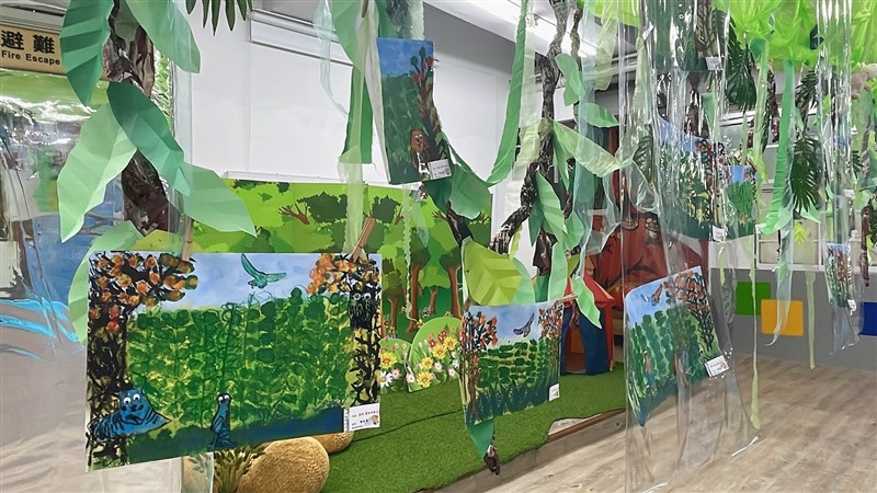 在疫情嚴峻國內確診人數居高不下的情況下,私立青園幼兒園舉辦由師生共同創作年度藝展,透過美學來療癒撫慰疫情下家長及幼兒的心。圖/新北教育局提供