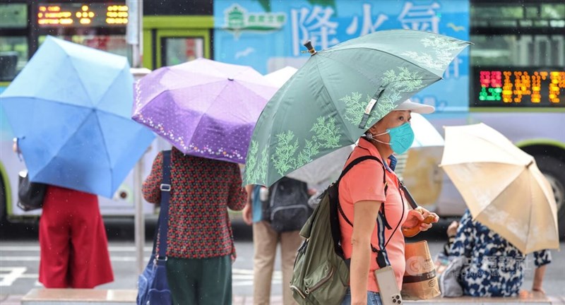 中央氣象局31日表示,受到鋒面接近及西南風影響,針對花蓮發布豪雨特報、北北基等18縣市大雨特報;提醒山區慎防坍方、落石,低窪地區慎防積、淹水。圖為台北車站前撐傘民眾。圖/中央社