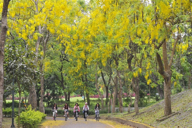 55億國旅補助,有希望最快提前至7/15上路,。圖為台南虎頭埤阿勃勒花季。圖╱資料照片