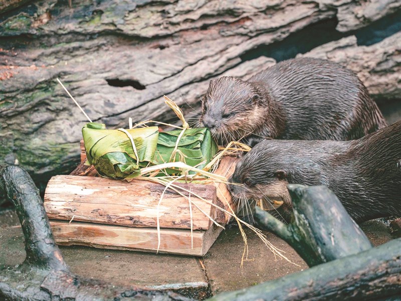 為慶祝端午節,台北市立動物園將在明日準備「冰粽」送給大貓熊、歐亞水獺、熱雨區小爪水獺、金剛猩猩及非洲象等動物享用,園方邀請民眾入園同樂;此外,6月20至30日園內將進行修繕以及員工訓練,期間不對外開放,提醒民眾以免撲空掃興。圖/台北市動物園提供