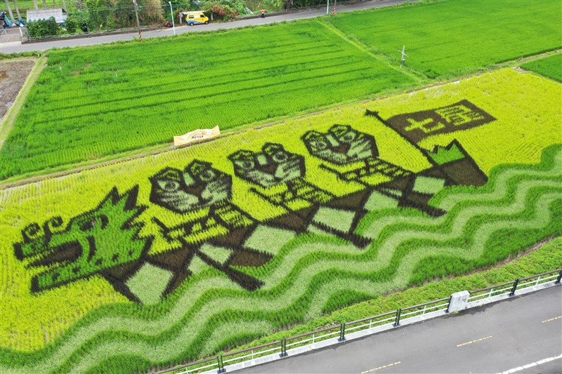 產業局表示,若民眾要到現場欣賞彩繪稻田,因為周圍沒有停車場,建議搭乘大眾運輸工具,不建議開車前往。