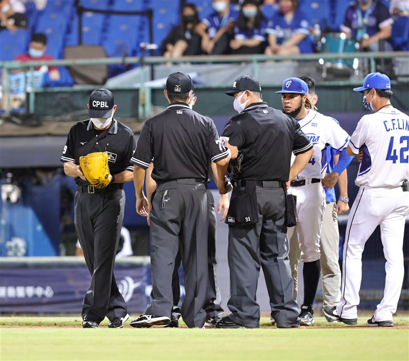 【記者曾博群台北報導】富邦悍將投手威迪茲於昨日例行賽中,經龍隊總教練葉君璋檢舉球體有外部物質,主審林金達認為有異,即啟動進一步檢查,經主審召集現場裁判共同檢視後,一致認定威迪茲有使用外部物質,主審立即宣告將其驅逐出場,後續經賽務部確認違反規則規定。