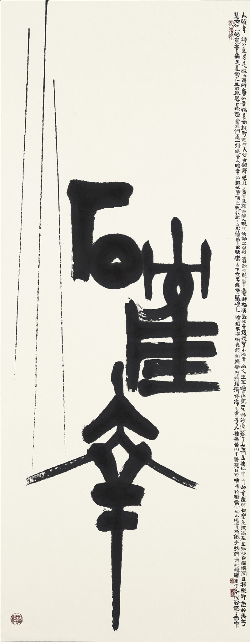 程代勒「見山是山」 找回對水墨初心 用書法回應社會 曹麗蕙 |2022.06.04 語音朗讀 4815觀看次 字級 大 中 小 書畫家程代勒以狂草書寫的〈老子道德經第一、二章〉,為媒材新穎的大型琺瑯作品。圖/記者曹麗蕙 【記者曹麗蕙台北報導】「我畫山水比較接近出世思想,書法創作反而是入世心境,反映的是當下社會。」書畫家程代勒將山水畫視為自心呈現,但一般人定位為修身養性的書法,他卻發揮「文字力量」,扣合時代脈動,強調與社會對話,〈圍城‧封城〉、〈電〉、〈太魯閣〉、〈藻礁〉等作品正是他以藝術家視角關注、針砭時局的創作,也展現書法記錄時代、回應社會的新風格。65歲的程代勒曾獲中興文藝獎(書法類)、全國美展書法第一名,歷任台師大美術系主任,從事美術教育及書畫創作逾40年,近日在國父紀代館展出的「見山是山─程代勒書畫創作展」,精選72組書畫作品,主要分為水墨山水與書法創作兩部份,均是他這幾年疫情期間的新作,展期至6月15日。程代勒巨幅墨色山水〈層巒峭立眾壑犇流〉。圖/記者曹麗蕙程代勒細述展名「見山是山」,並非是禪宗歷經見山不是山,再回到見山是山的第三階段,他笑說:「沒那麼高境界」,反而是以素樸方式重拾筆情墨趣,找回自身對水墨熱愛的「初始本心」,「直觀」的見山是山,「本著一開始對水墨題材、大自然的喜好,忠於自己內心,老老實實畫出來。」有別於上一階段的彩墨時期,這回他回歸東方藝術精神,呈現墨色山水,筆法上借用拓印方式,呈現變化萬千的山石造型。其中224×600公分的巨幅創作〈層巒峭立眾壑犇流〉,更純粹只用墨色,「墨本身和其他色彩不同,和宣紙結合有更多元的樣貌」,因此他以松煙、油煙、煤煙原料,調出不同的黑,展現氣勢磅礡的墨色山水。書畫家程代勒的原住民系列作品〈山林的呼喚〉,一方面是自然山水的呼喚,也象徵山中原住民朋友友情的呼喚。圖/記者曹麗蕙書法展品更是精彩,分為與社會對話的現代書法,以及回望經典的基本功作品。「許多人認為書法在當代藝術中是很老的東西,沒有時代感。」但程代勒卻鍾情書法深厚的文學、藝術涵養,尤富繪畫做不到的「文字力量」,得以反映社會現象,如他所言:「對我來說不是怎麼寫,而是寫什麼,來反映活在的這個當下。」書畫家程代勒回應社會議題的書作〈圍城‧封城〉。圖/程代勒提供程代勒的書法不僅主題回應當前社會,形式也跳脫傳統筆墨框架,把篆刻和繪畫的布局融入畫面中,如〈圍城‧封城〉書作中,以厚重線條包圍畫面,墨色暈染四周,顯示疫情肆虐,各國鎖國、封城、邊鏡封閉的狀況。書畫家程代勒回應社會議題的書作〈太魯閣〉。圖/程代勒提供太魯閣書作有兩幅,其一〈奇峻壯美太魯閣〉突顯太魯閣色彩斑斕的壯闊美景;另一幅〈太魯閣〉則以濃墨記錄去年太魯閣號翻車,舉國哀悼,文字造型就像火車在山洞後擠壓的狀態。書畫家程代勒回應社會議題的書作〈釣魚台〉。圖/記者曹麗蕙〈電〉書寫去年五月台灣一周經歷兩次大規模停電事件;多年爭議不斷的〈釣魚台〉,用宛若魚鈎的勺字造型將「釣魚」形象具現;年輕人的時代流行語彙〈小確幸〉,以三條細線和畫面對比的方式,展現出「微小」而確實的幸福。這些都能看出程代勒在造型和空間布局上力求新變,也展現書法筆墨特有的繪畫性,積極為傳統書畫探尋新的出路。書畫家程代勒回應社會議題的書作〈小確幸〉。圖/程代勒提供不僅如此,這次展覽中有兩幅亮點作品相當吸睛,是程代勒回望經典的基本功書作。一件是楚文字書寫的八屏書法〈莊子˙養生主〉,用筆颯爽。他侃侃而談:「因為莊子是楚國人,就以近代甫出土的春秋戰國時期的楚文字來書寫(屬於篆書的一種),因希望盡可能還原當時的文字狀態。」書畫家程代勒以楚文字書寫八屏書法〈莊子˙養生主〉,用筆颯爽。圖/程代勒提供另一幅為全長26公尺的大型琺瑯作品,以狂草書寫的〈老子道德經第一、二章〉。而在光潔的琺瑯瓷板上,用毛筆沾釉料書寫,釉料凝結厚重與釉板光滑無阻,形成極大的反差,必須調整多年紙面書寫的習慣,「釉是一坨,就像用筆沾泥巴寫字,很重,且要寫這麼大的字,毛筆比較不容易揮灑開。」他透露運筆時的挑戰,並認為,這幅作品具實驗性,可以放置戶外,是書法在公共藝術上的運用,也展現書法在當代形式的變化。 程代勒在光潔的琺瑯瓷板上,用毛筆沾釉料,以狂草書寫的〈老子道德經第一、二章〉。圖/程代勒提供 前一篇文章 氣象局發布國家級警報 新北市慎防大雷雨 下一篇文章 會考補考首日 4301名考生應試 熱門新聞 01【讓愛自由】纏繞與獨立之間2026.04.0202明德水庫蓄水量僅27% 今起供4停42026.04.0103新生首次到校2026.04.0204星雲大師靈骨分燈日本 法燈長明2026.04.0105星雲大師靈骨分燈泰國 化益世人2026.04.0206東京櫻花滿開2026.04.01079公尺高恐龍 現身澄清湖2026.04.0108打字機重返課堂 對抗AI代寫2026.04.0209中美並重 鄭麗文傳6月訪美2026.04.0110睽違53年 NASA載人繞月1日升空2026.04.01 訂閱電子報 台北市 天氣預報 台灣一週天氣預報 相關報導 浪漫那瑪夏 賞螢採果樂降雨兩樣情 南部水庫沒解渴玉山4月雪拳擊亞錦賽 陳念琴保底銅牌 桌球世界盃 林昀儒暌違7年闖4強高雄貓站長 「蜜柑」 6歲了全台黑琵數量 創新高 作者其他文章范振金特展 呈現半世紀窯變台灣工藝3專書 呈現文化獨特樣貌